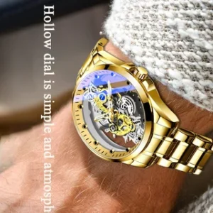 Round Golden New Men Watch Skeleton Automatic Luxury Watches, For Daily